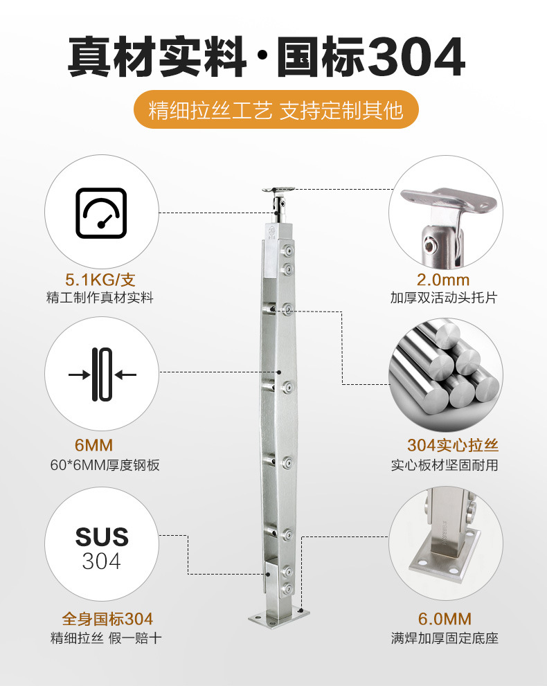 栏杆高度(一般在 900mm-1200mm之间,具体规格可按用途设定)