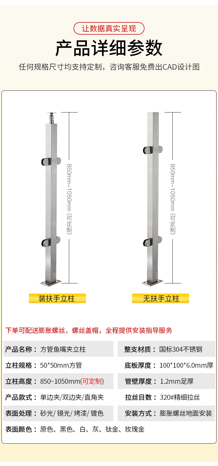 * 配件的规格、材质、表面处理可以根据客户的要求更改